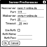 Besonderheit bei der Nutzung des T-Online Newsservers per PalmPilot: Statt news.t-online.de kann hier eine der IP-Adressen angegeben werden, sonst wird der Server oft nicht gefunden! Dies gilt offensichtlich für alle Palm-News-Clients, bestätigen kann ich dieses Verhalten für Yanoff und Newspad. Offensichtlich hat der Palm TCP/IP-Stack Probleme bei der Auflösung langer Severnamen. Neu: IP-Nummer ab Mitte Okt. 2000: 62.153.159.134 - Port 119. |