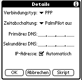 Vorinformation: Modem-Einstellungen im PalmPilot hier klicken |